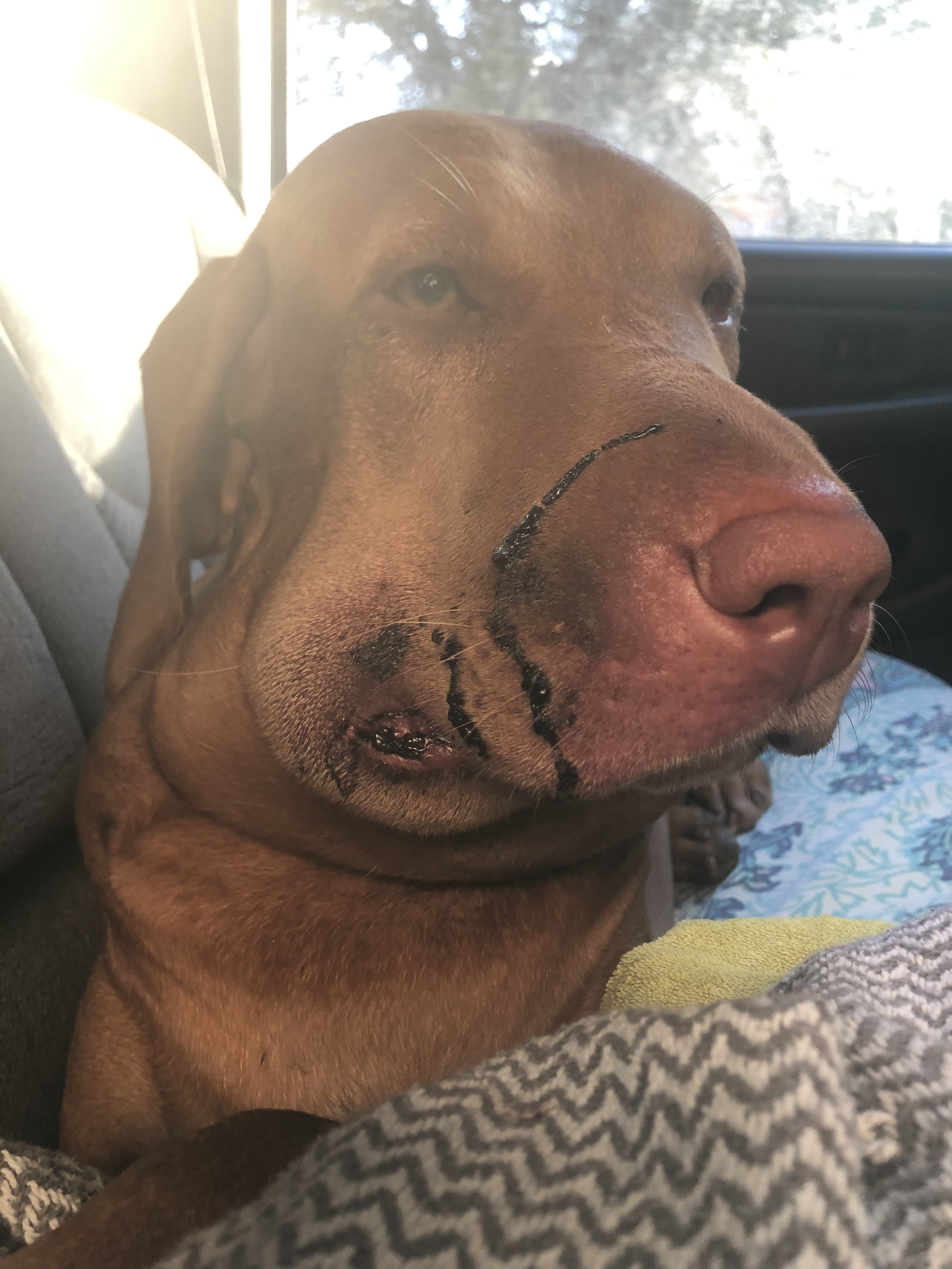 This was right after she was bit, on the way to the vet